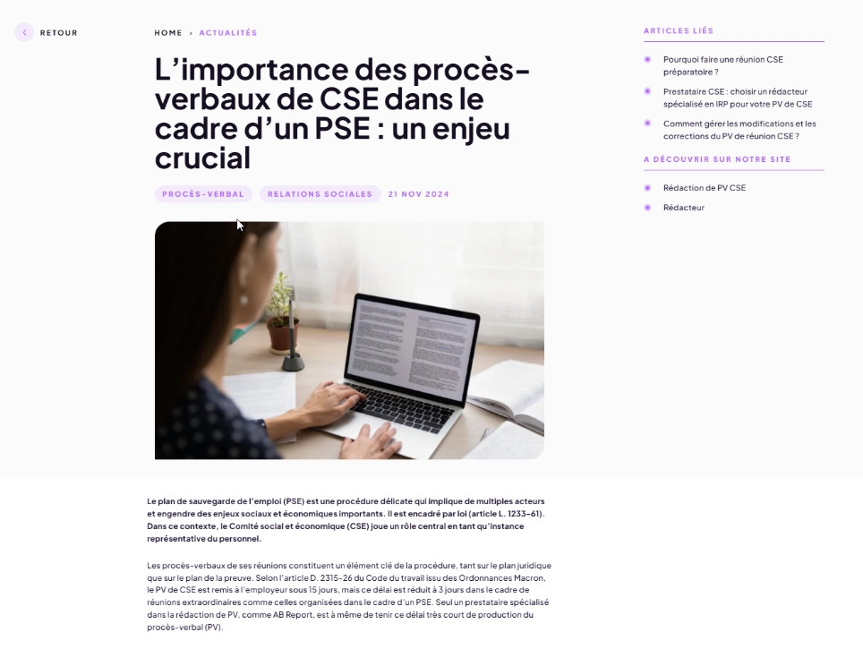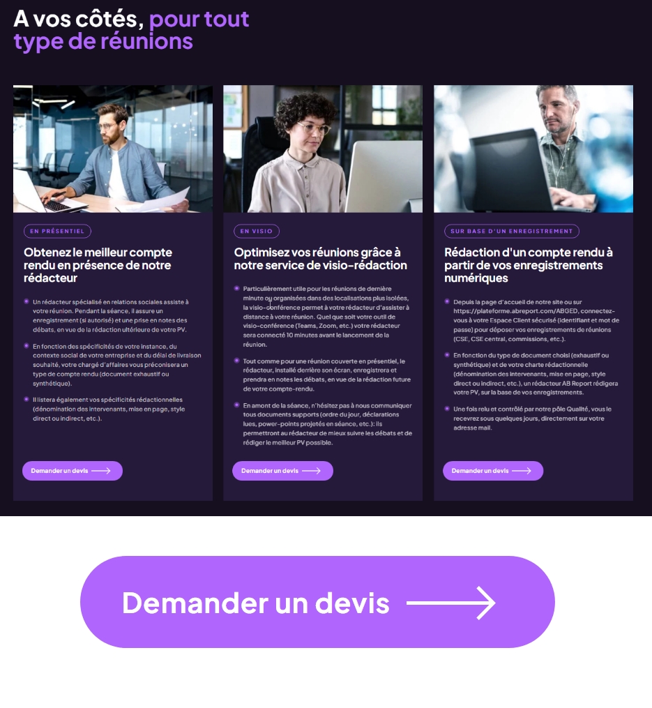 A French leader for more than 20 years, AB Report specializes in minutes and reporting for Works Councils (CSE) and General Meetings.