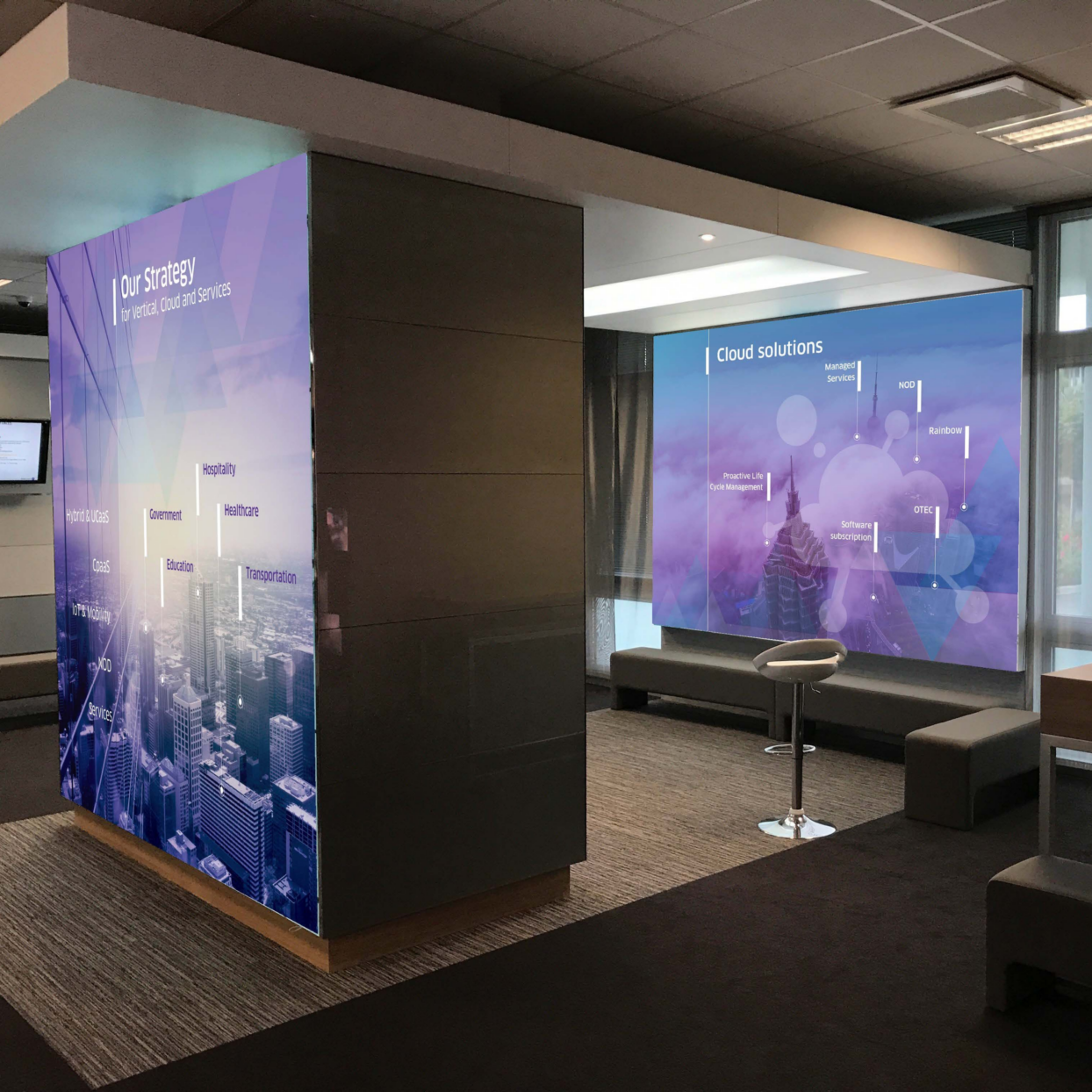 Installation of 30+ animated panels in conference rooms and the showroom, elevating the space into a high-end technological showcase."